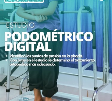 En nuestras Clínicas, realizamos Estudios Podométricos Digitales, los cuales nos permiten identificar los puntos de apoyo en las plantas de los pies, pudiendo identificar el origen de dolor en tobillos, rodillas, cadera o espalda. Así como deformidades en los pies (Halux Valgus, conocidos como juanetes).