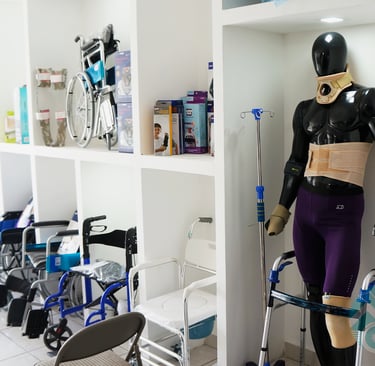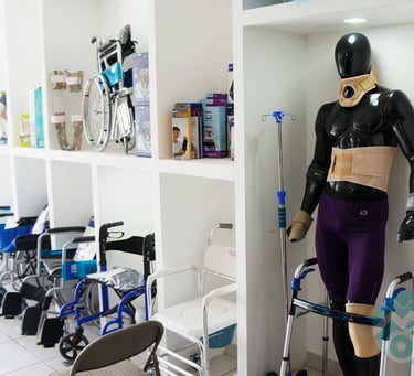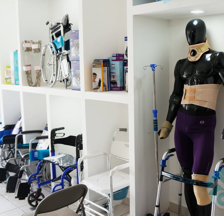 Sillas de ruedas, Muletas, Andaderas, Auxiliares de baño, camas de hospital, sujetador de suero.